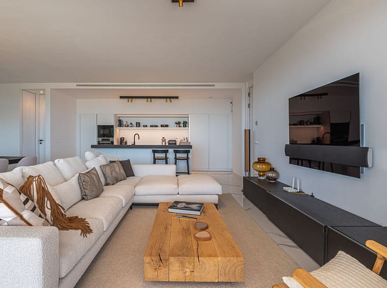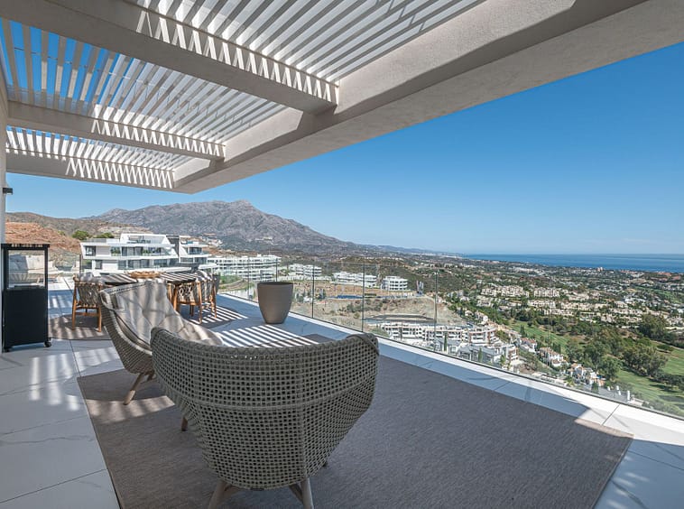 This stunning apartment has a prestigious, luxurious and trendy image and is built to the highest qualitystandards. It consists of three bedrooms of which the master is ensuite, dressing area, 2 other bedrooms sharing a bathroom with large shower, large living room with open plan Bulthaup kitchen and Miele appliances, and a spacious terrace of 61 square meters. All 3 bedrooms and living room have direct access to the terrace and views to the Mediterranean Sea. The terrace is equipped with a sofa that sits 6 people. It has 2 parking spaces in a amazingly designed garage. The ingenious boutique concept of the architect offers you a maximum of privacy. All the apartments have been designed to be corner units avoiding adjacent neighbours providing the apartments of privacy and tranquillity. Take a refreshing dip in the infinity pool that the community offers while you delight yourselfwith a fantastic view that extends from Marbella to the Rock of Gibraltar and Africa. Surrounded by four golf courses, the complex is accessed by La Quinta and Ronda roads. You will only be 3 minutes away from San Pedro and 45 minutes away from the airport. Close by the complex, there is a commercial area with grocery shops, pharmacies and restaurants where you will be able to do your daily shopping.