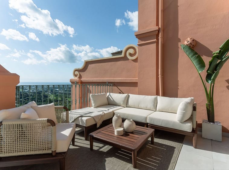 This beautifully renovated 4-bedroom, 3-bathroom duplex is the perfect blend of Scandinavian design and Mediterranean living. It’s bright, spacious, and thoughtfully designed, offers a warm and inviting atmosphere with natural wooden details, a sleek microcement staircase, and elegant Scandinavian-style stucco moldings. The open-plan kitchen, dining, and living area flows effortlessly onto a south-facing terrace, where unobstructed sea views set the scene for both relaxing mornings and unforgettable sunsets. Large windows fill the home with natural light, enhancing its airy and cozy feel. Located in a calm and beautifully maintained community, residents can enjoy a serene atmosphere and a lovely communal pool area. With La Quinta Golf course, top-rated restaurants, and Marbella’s vibrant lifestyle just minutes away, this home is a rare find for those seeking timeless design, breathtaking views, and a prime location.