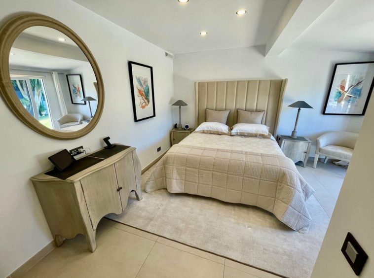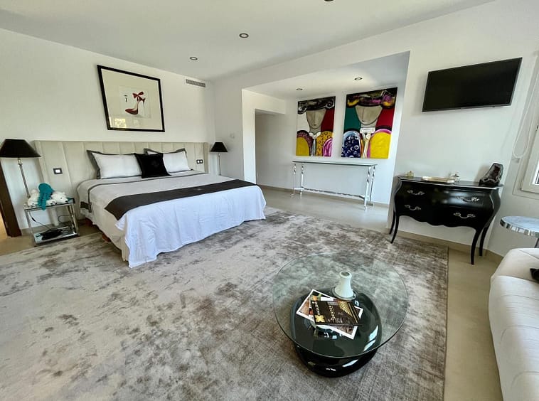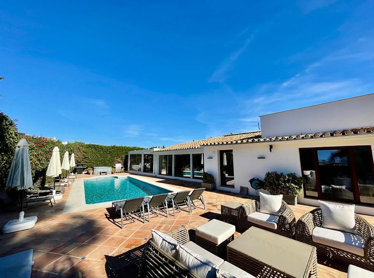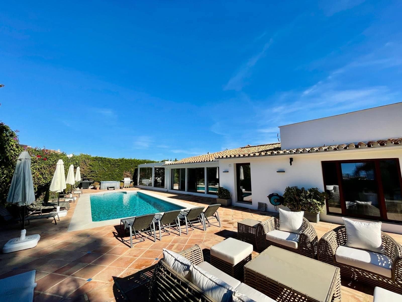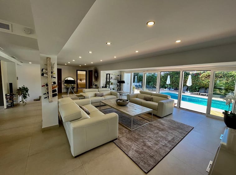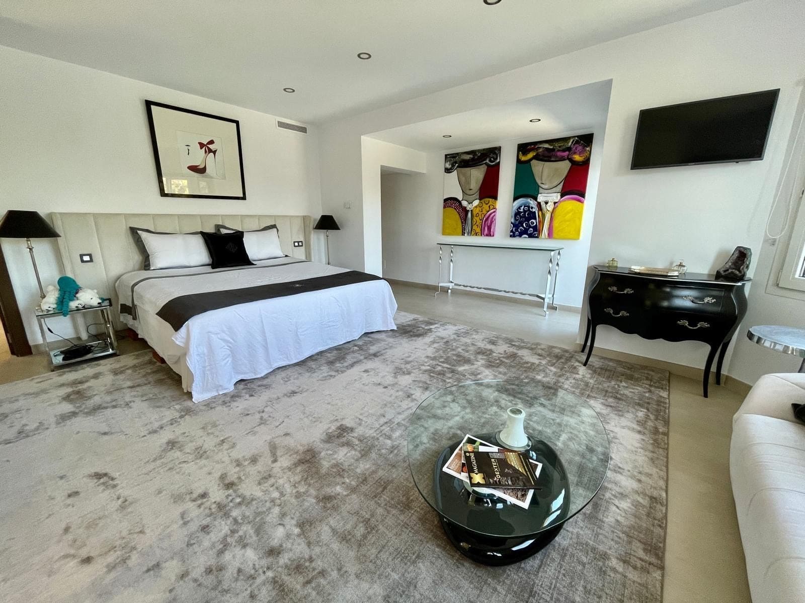 Located in Linda Vista Baja and just a five minute walk from the beach, this east facing villa offers generous space, strong rental potential and a versatile layout suited for both end buyers and investors. Set on a 1,500 m² plot with 550 m² built, the property features seven bedrooms and eight bathrooms distributed across two levels, each with its own living room and kitchen. The lower level has a separate entrance, allowing it to function as an independent guest house within the same structure. Outdoor areas include a pool, solarium, hot tub, ample terraces and a large driveway with additional exterior parking. There is also an enclosed garage for two cars that can be converted into extra interior living space if required. Air conditioning is installed throughout the home for year round comfort. The villa is sold with an active tourist rental license, making it an attractive option for those seeking a high yielding short term rental investment. There is also potential to add two more rooms, further increasing its flexibility and value. A well maintained property in a sought after beachside location.