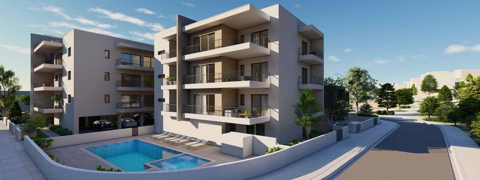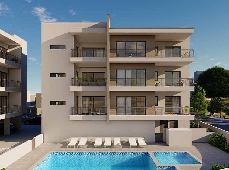Aster Gardens Apartment No. 205 in Block B is a beautiful 2-bedroom open-plan apartment in the city centre of Paphos. The apartment enjoys easy access to the lift, comfortable covered verandas and a communal swimming pool. Other than its contemporary and functional design, the other major advantage of Aster Gardens is its proximity to all city centre amenities such as the Kings Avenue Mall, a number of restaurants and bars, a few minutes’ drive to the beach and two upcoming universities that will open up in Paphos – the American University of Beirut, and the Cyprus University of Technology.