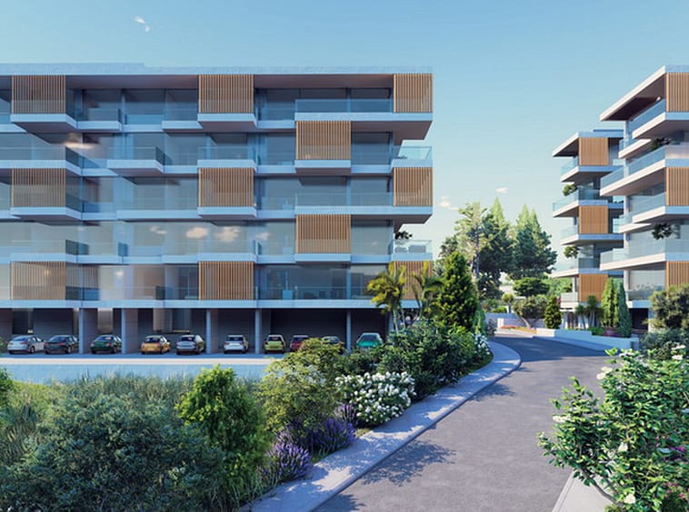 Galaxy Residences is a stunning development with two five-storey blocks of apartments for sale in Paphos. Within the two blocks, one can find a range of 2 and 3 bedroom apartments, the majority of which will have excellent sea views. A number of features can be found in the development, such as a communal swimming pool for each block, solar panels which will improve the energy efficiency of the building, and of course the beautiful modern design of the building that comes with sleek lines, large window openings and concrete finishing.