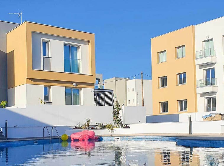 Rose Gardens is a contemporary residential development with 2- and 3- bedroom apartments and villas. The development is located at the heart of the city of Paphos close to all major amenities such as the Paphos Harbour, the tourist area and the Kings Avenue Mall. Each residence in Rose Gardens enjoys comfortable living areas with covered verandas as well as a large communal swimming pool with a separate kids’ pool for a wonderful leisure experience. Buy a property for sale in Paphos Cyprus in Rose Gardens.
